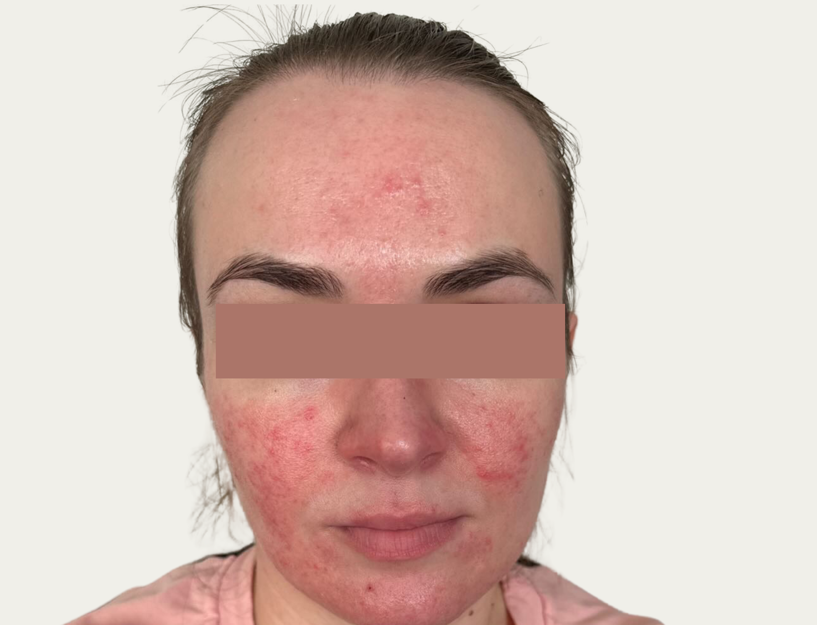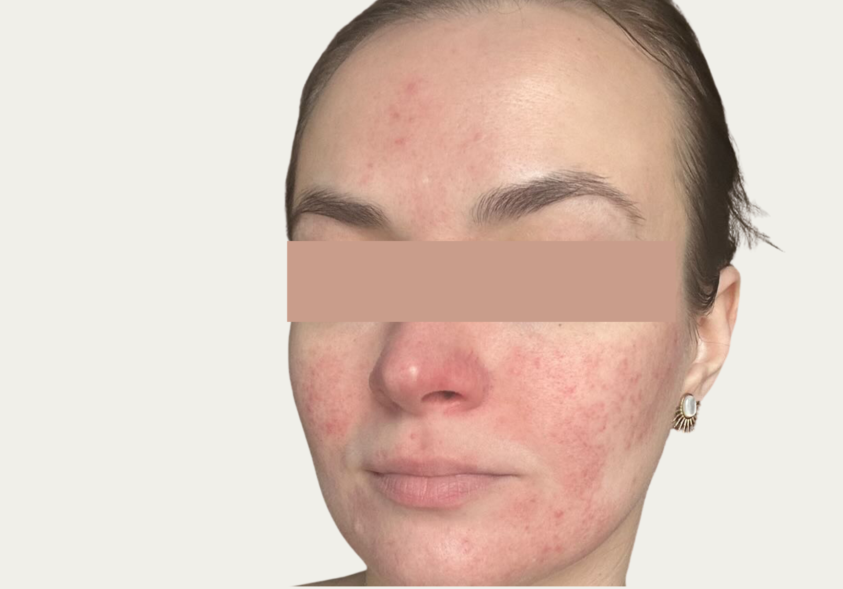 Moteris kreipėsi dėl ūmios rožinės - Acne Rozacea. Ilgą laiką vargino raudonis, bėrimai, odos jautrumas, perštėjimas, deginimo jausmas.